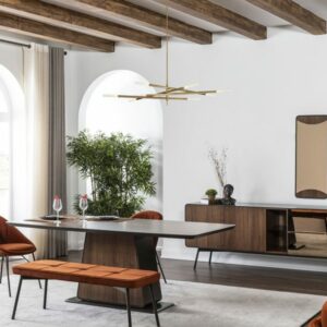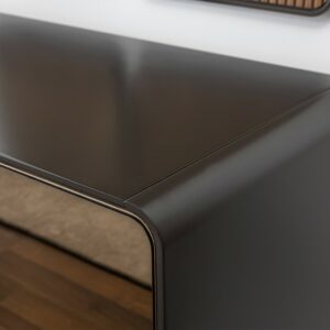 Komoda Arcadia dio je istoimene kolekcije, a dizajnirana je tako da unosi dozu sofisticiranosti u svaki prostor – od dnevne sobe do spavaće sobe ili blagovaonice. Odlikuju je brončana ogledala na frontama ladica, otvorena polica te zatvorene fronte s okomitim urezima koje definiraju karakter kolekcije Arcadia. Izrađena je od kvalitetnih materijala, s naglaskom na preciznu obradu i vizualni identitet koji se lako uklapa u suvremene prostore. Zahvaljujući kompaktnim dimenzijama i promišljenoj unutarnjoj organizaciji, komoda nudi dovoljno prostora za pohranu bez zauzimanja suvišnog mjesta.