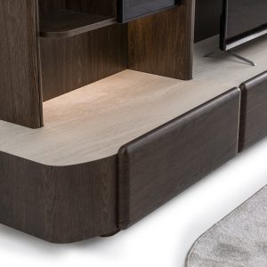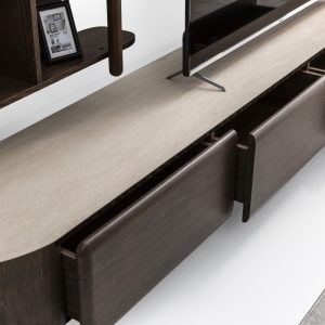 TV komoda Morphose dio je kolekcije koja se ističe pažljivim odabirom materijala i promišljenim dizajnom za uređenje dnevnih prostora. Ova komoda nudi tri prostrane ladice koje omogućuju organizirano pohranjivanje multimedijskih uređaja, daljinskih upravljača i drugih dodataka. Kupci mogu birati između dvije izvedbe gornje plohe – u drvu ili travertin kamenu – čime se postiže personalizirani izgled koji se lako uklapa u razne stilove interijera. Neutralne linije i uravnotežene proporcije osiguravaju funkcionalnost bez narušavanja estetike prostora.